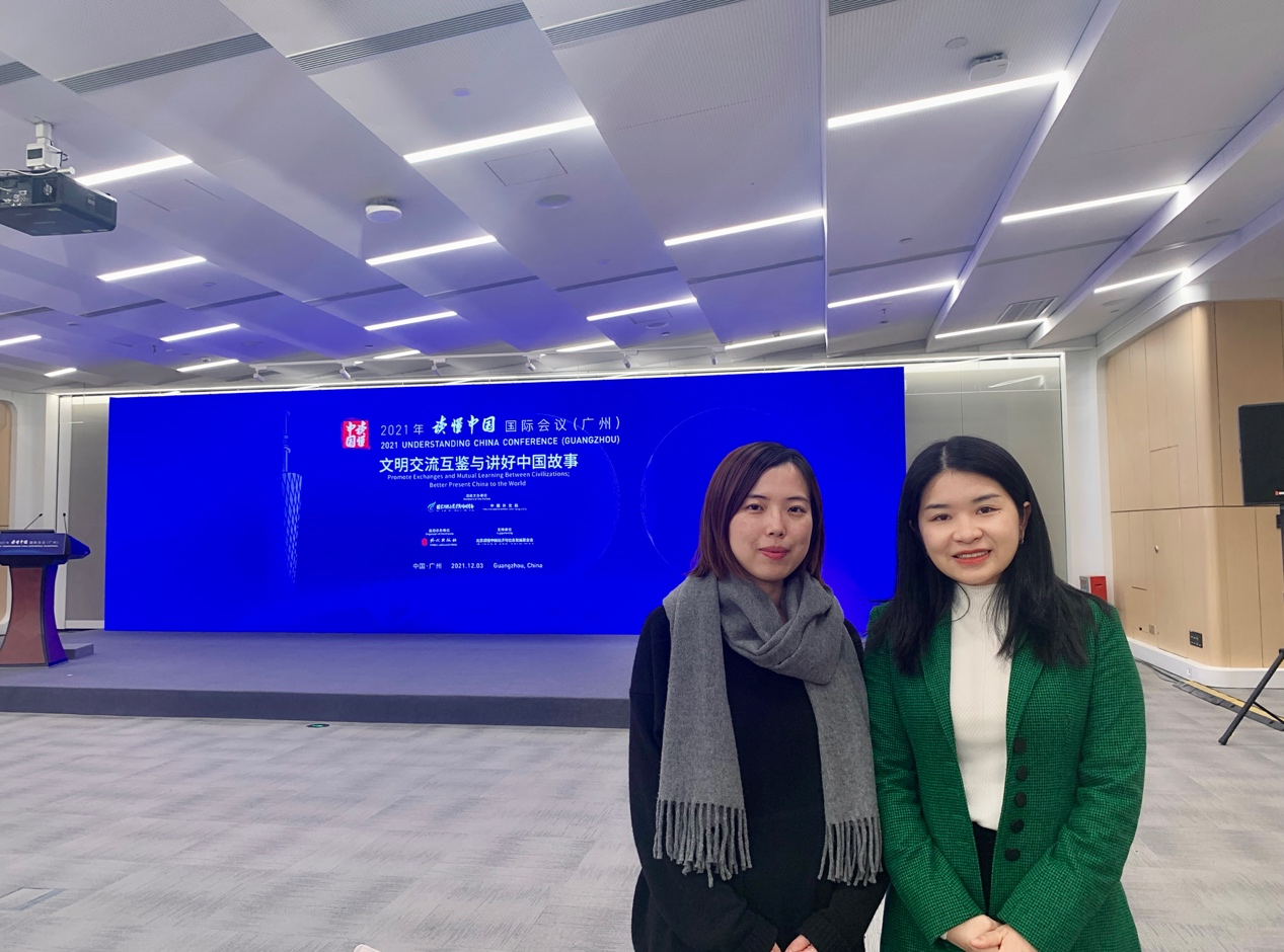 在“2021从都国际论坛”上陈湘蓉、陈群老师、俄语系博士生姜超和法语MTI毕业生袁丽萍为大会全程提供了同传服务,为上合组织秘书长等重要外宾提供了交传服务。