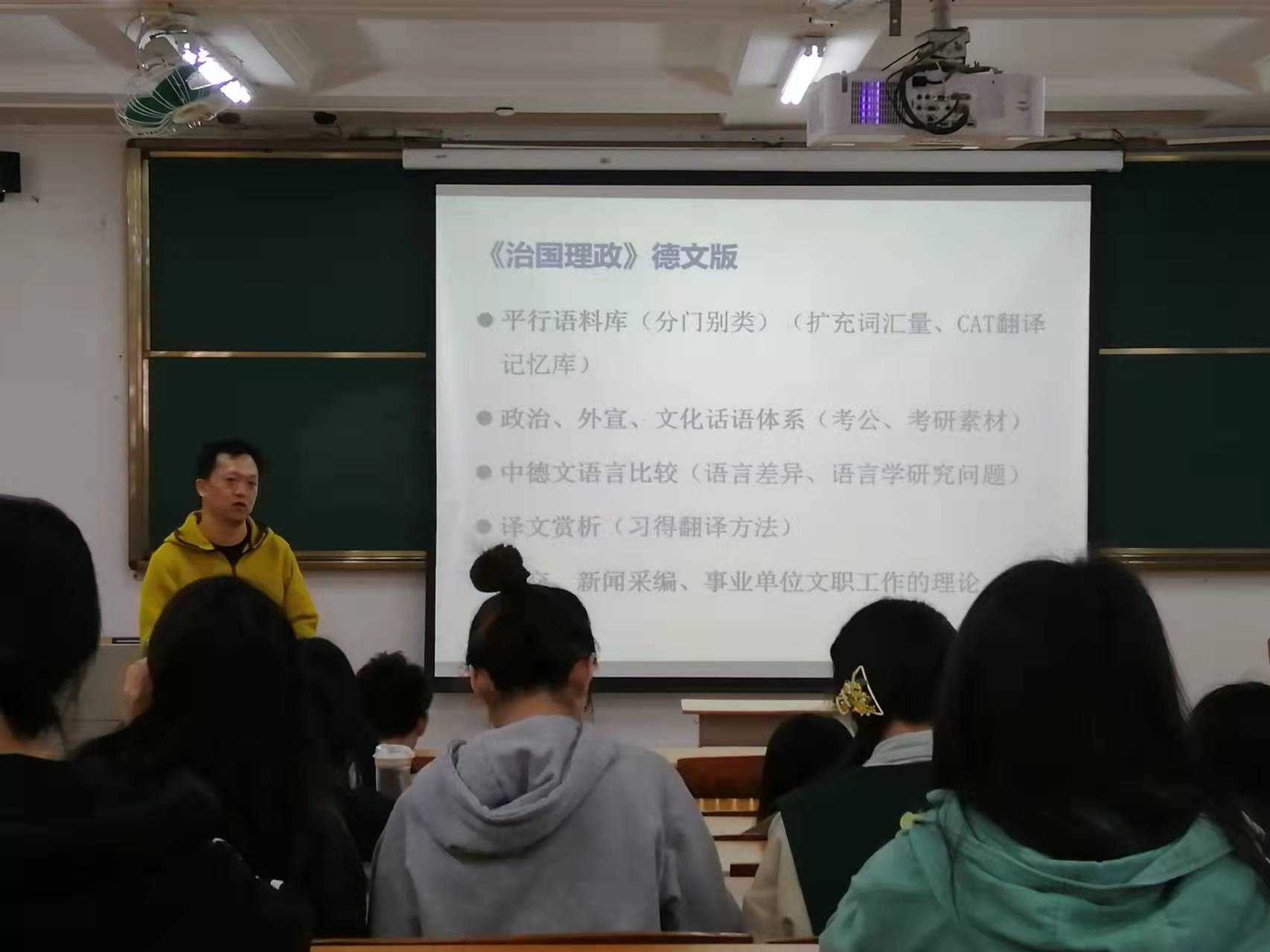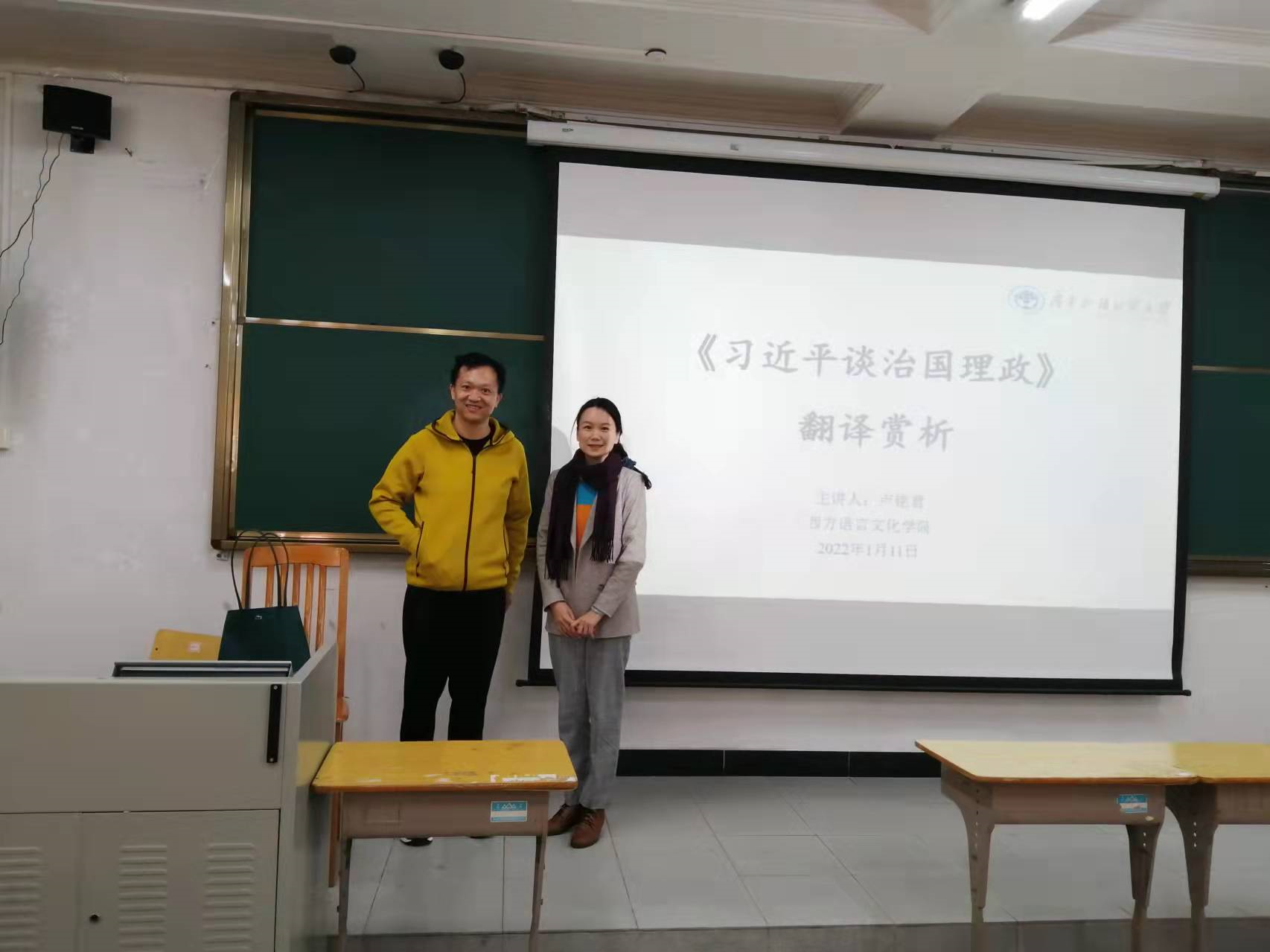 德语系在北校区二教114举行讲座——《习近平谈治国理政》中德翻译赏析与学习。主讲人为卢铭君教授与崔涛涛老师。