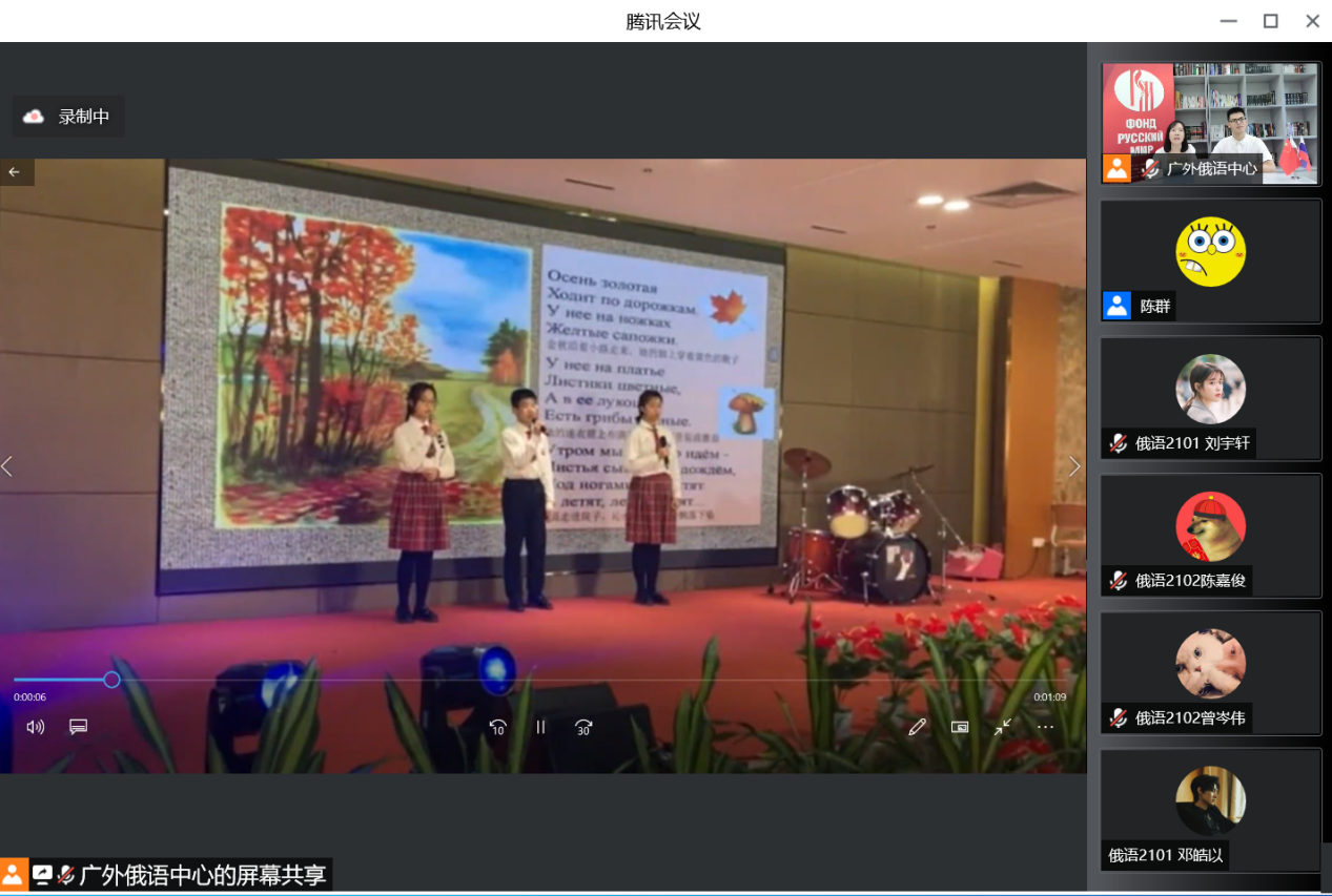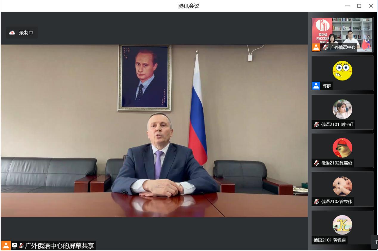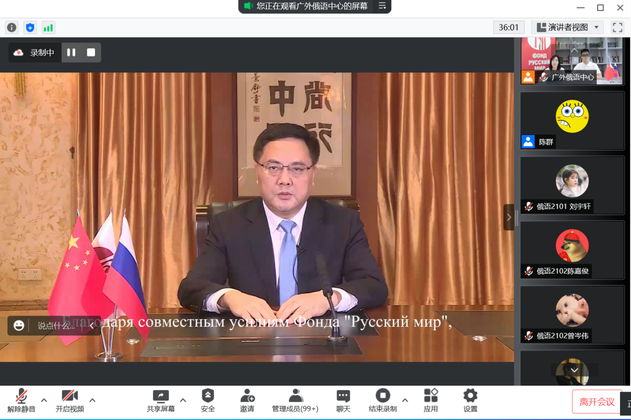 的150多名师生代表和其他俄语爱好者观看了线上直播。