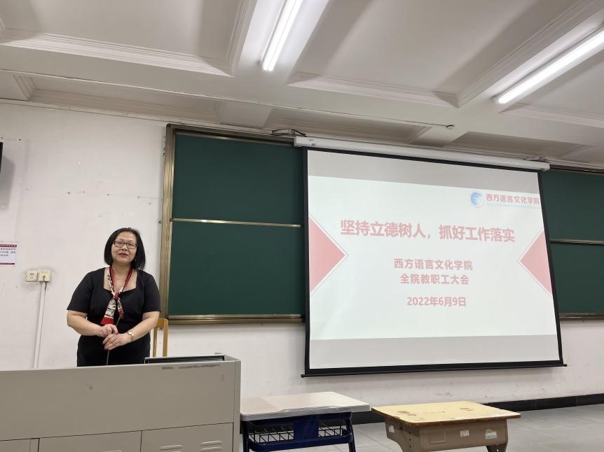 杨可院长再次对两位新进教师表示热烈欢迎,对全体教师本学期的辛勤付出表示感谢,同时指出全体教师要继续坚守岗位、恪尽职守,不打折扣地认真完成工作安排,站好期末最后一班岗。
