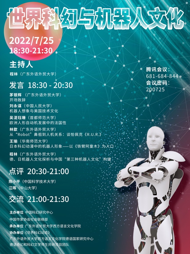德语国家研究中心、德语奇幻和科幻文学师生共研项目团队协办,是中国科幻研究中心2022年度“科幻沙龙研习季”的“收官之战”。沙龙就机器人和科幻等前沿话题进行了深入探讨,尽管是在暑假期间举办,但仍吸引了来自中国人民大学、中山大学、中国科学技术大学、首都师范大学、华南师范大学等高校近两百名师生参与交流。