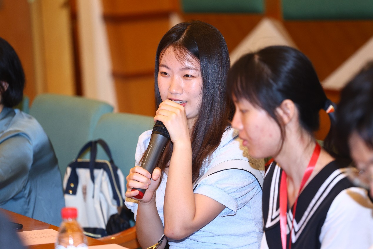为了更全面地了解“理解当代中国”系列课程的建设情况,会议还邀请了两位研究生代表汇报《高级汉法翻译教程》的教学和使用情况。两位同学从学生的视角介绍了课程内容、课堂形式、课程心得感想和遇到的困难,对于帮助与会专家了解课程建设情况作了重要补充。