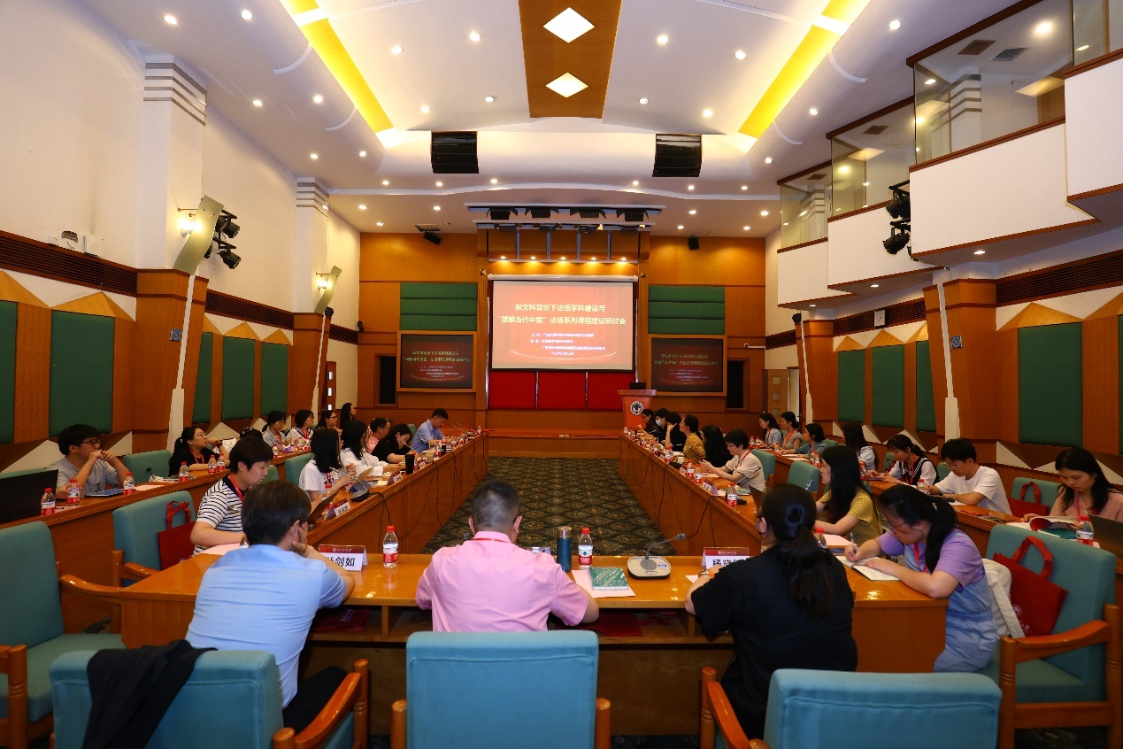 主办,外语教学与研究出版社及广东省外语教学指导委员会欧洲语言分委会协办,研讨会分为“新文科背景下法语学科建设”和“‘理解当代中国’法语系列课程建设”两个专题。