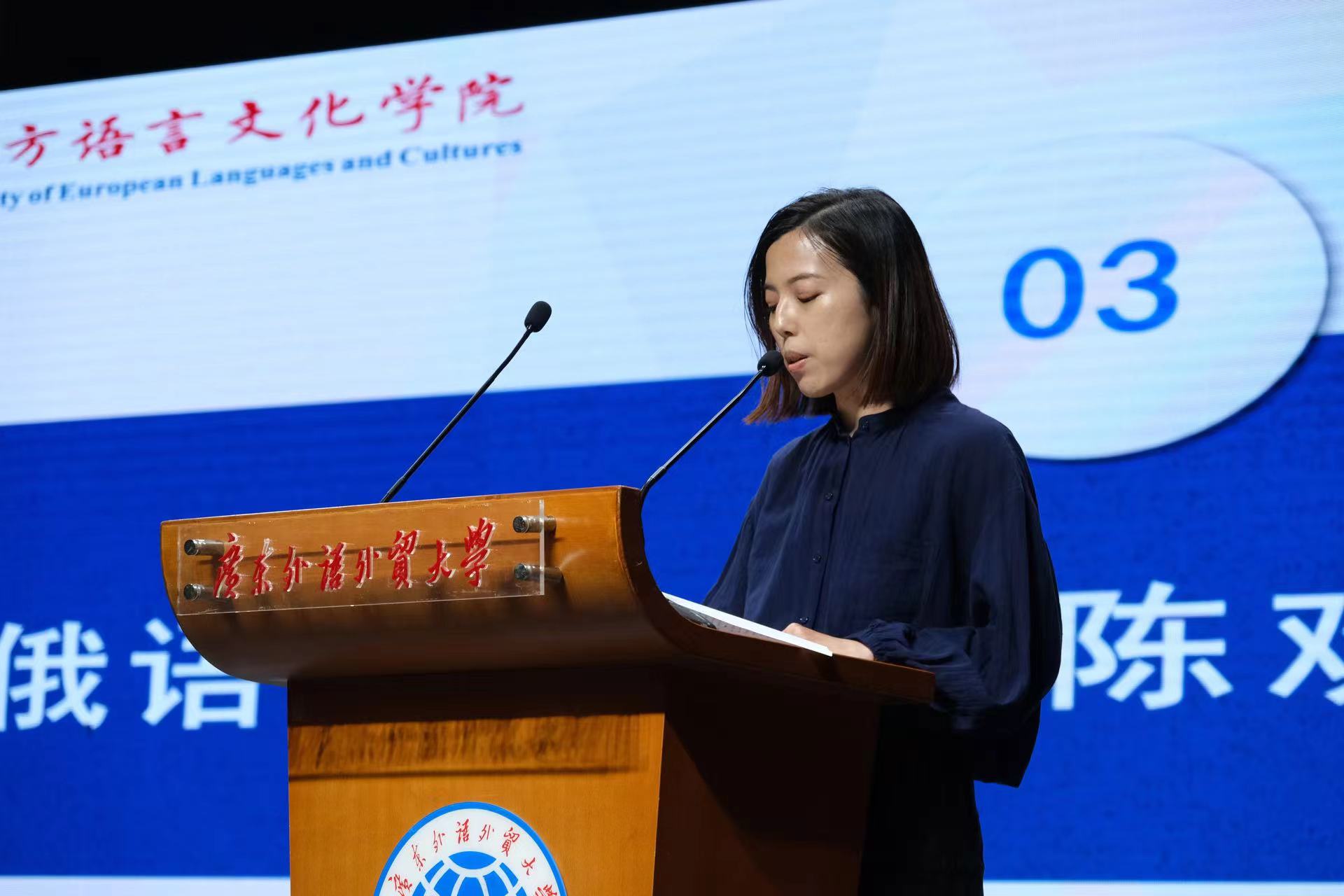 图三:教师代表、俄语系系主任陈欢致辞