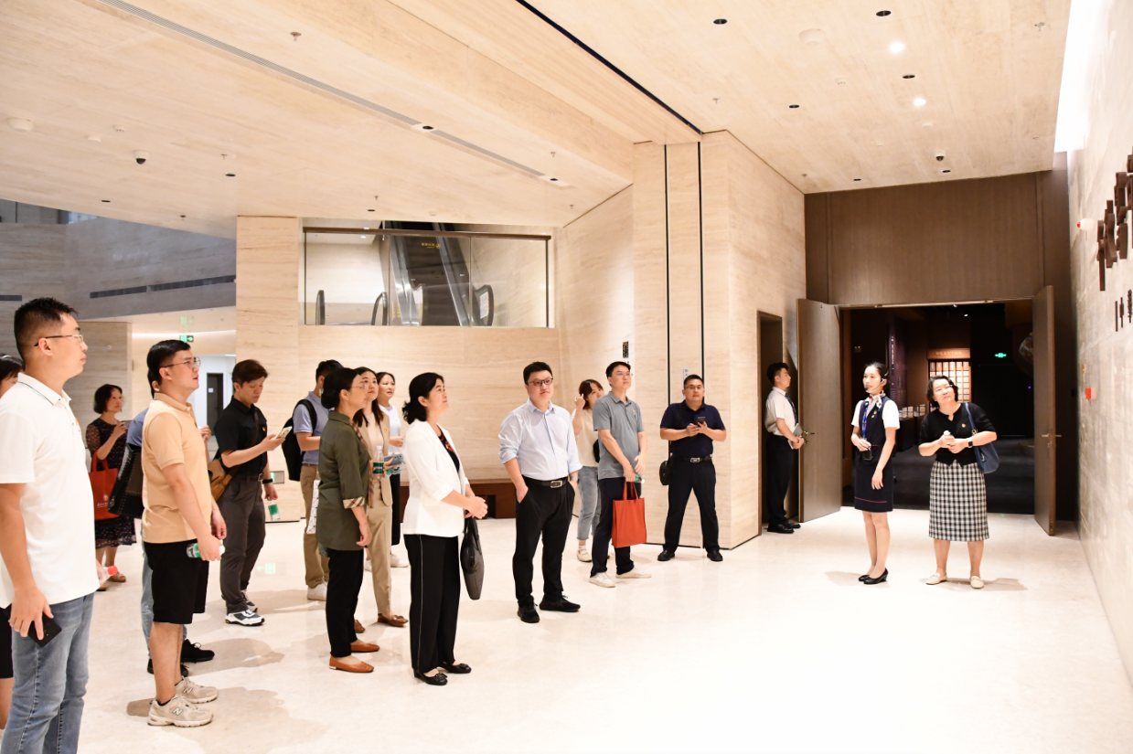 在国家版本馆广州分馆副馆长钱国富及展厅专业工作人员的陪同和讲解下,党员同志们认真重点参观学习了“千秋写印 华夏有章——中华版本概览”“红色印记 映照初心——红色广东专题版本展”“时代留声 传世之音——中国黑胶唱片版本展”等专题展览。国家版本馆广州分馆充分运用信息技术、数字化、虚拟现实、物联网、大数据、移动互联等现代技术手段,提供沉浸式、情景式的藏品信息展示,让人流连忘返,给党员同志们留下了深刻印象。党员同志们用心感受了中华版本形态嬗递之序,领略了中华文化的独特魅力;通过红色版本学习了中国共产党在广东团结带领人民进行革命斗争的光荣历史;从经典红歌、传统戏曲、经典民歌、流行歌曲中聆听了传世之音,感受到了艺术的魅力,从中汲取了奋进的力量。