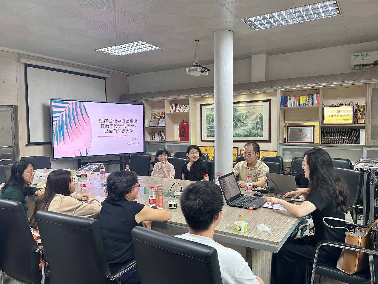 会议室举办“理解当代中国”读写教学设计分享会,来自不同专业的十余名教师以线上线下相结合的形式参会,共同讨论“理解当代中国”读写课程的设计与实践。