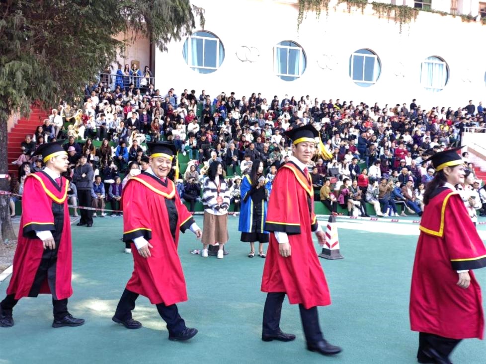 下午,学位授予仪式在修缮一新的综合体育场上如约而至。红旗飘飘,扬起我们的情怀;歌声朗朗,唱响青春的活力;草地上的椅子整齐排列,等候艳阳高照下各乐天堂
