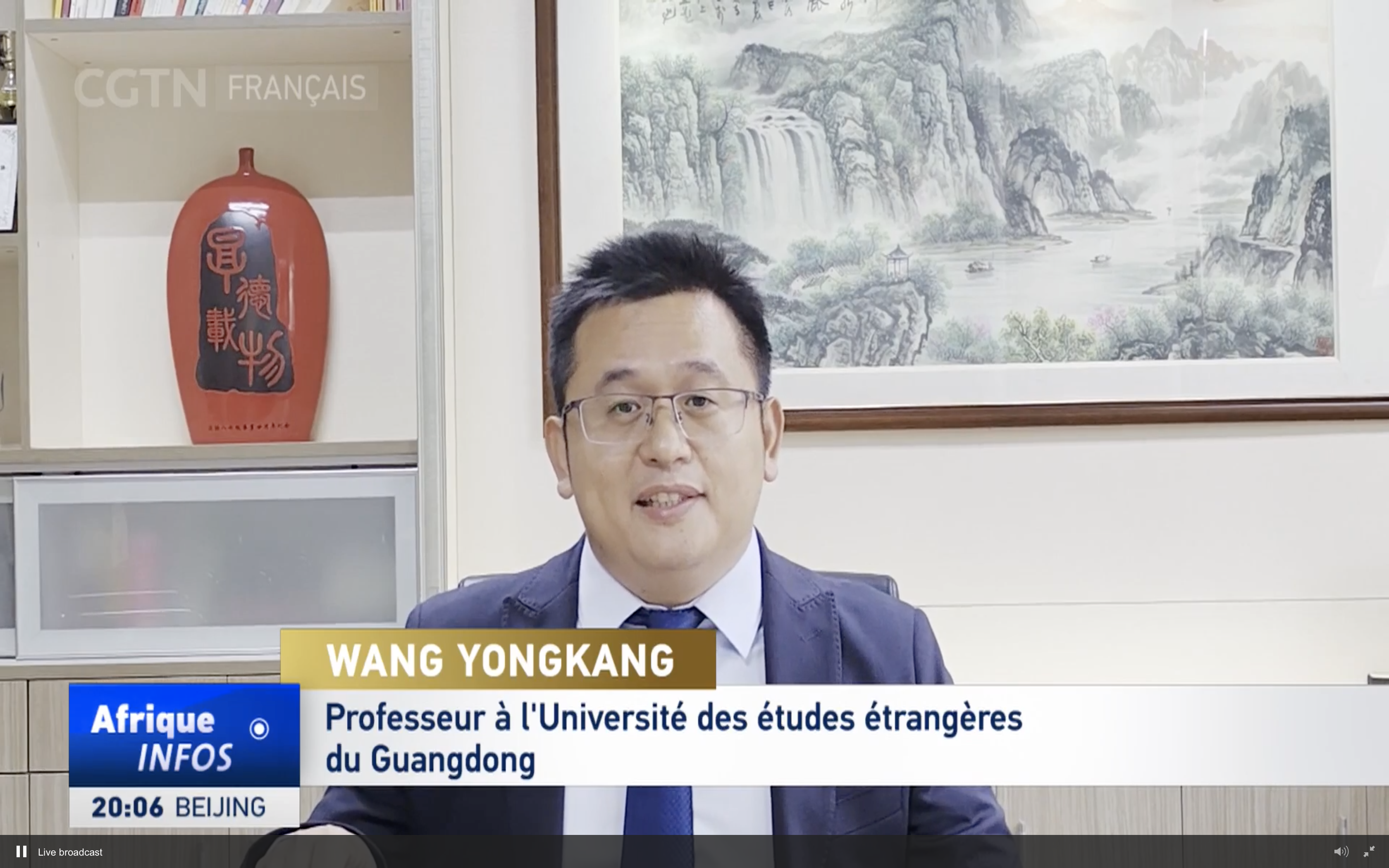 法语系教师王永康于当天接受中央广播电视总台法语频道(CGTN Français)采访,谈论刚果(金)大选情况。