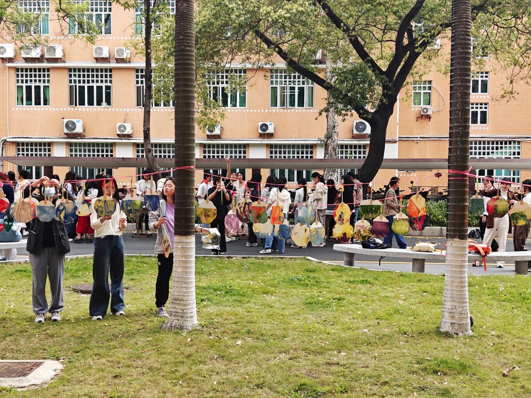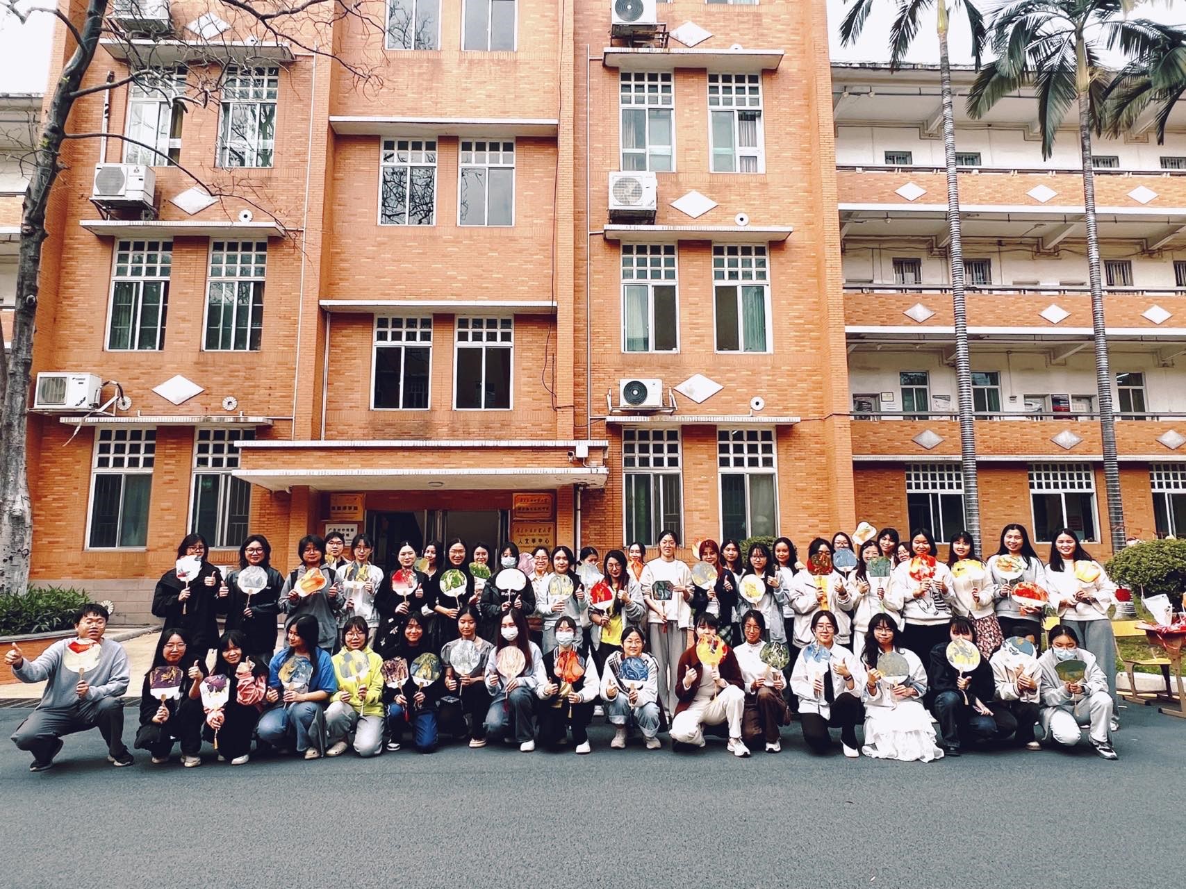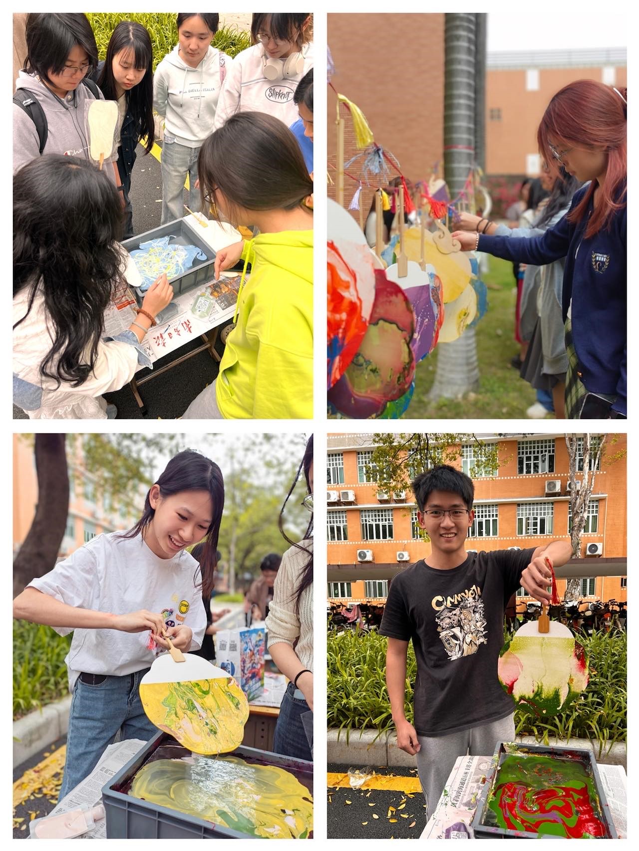 在四教门口举办“以漆绘扇·用爱传承”心理美育活动,旨在通过用团扇漂漆的活动,带领同学们感受中国传统非遗文化的魅力,并在心理美育活动中愉悦身心,放松心情。