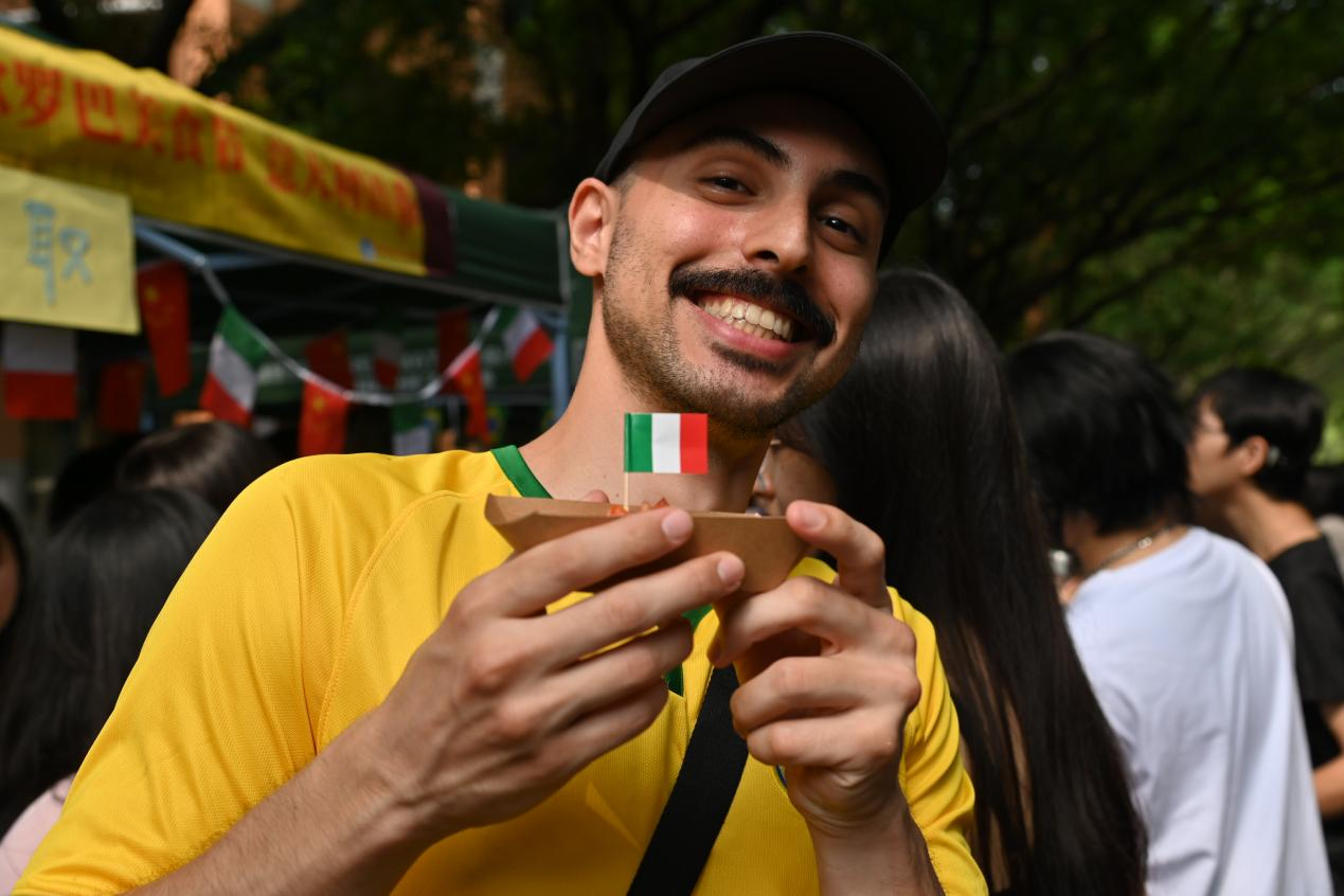 各语系学子精心准备的欧洲各国特色美食:香气四溢的俄罗斯列巴和红肠、西班牙的桑格利亚酒和火腿、葡萄牙的猪扒包和葡萄酒、意大利的意式千层酥和奶油意面等美食齐聚一堂,让师生们不出校门便能品尝到地道的欧洲风味。这不仅是一次味蕾的盛宴,更是一次文化的交流与碰撞。