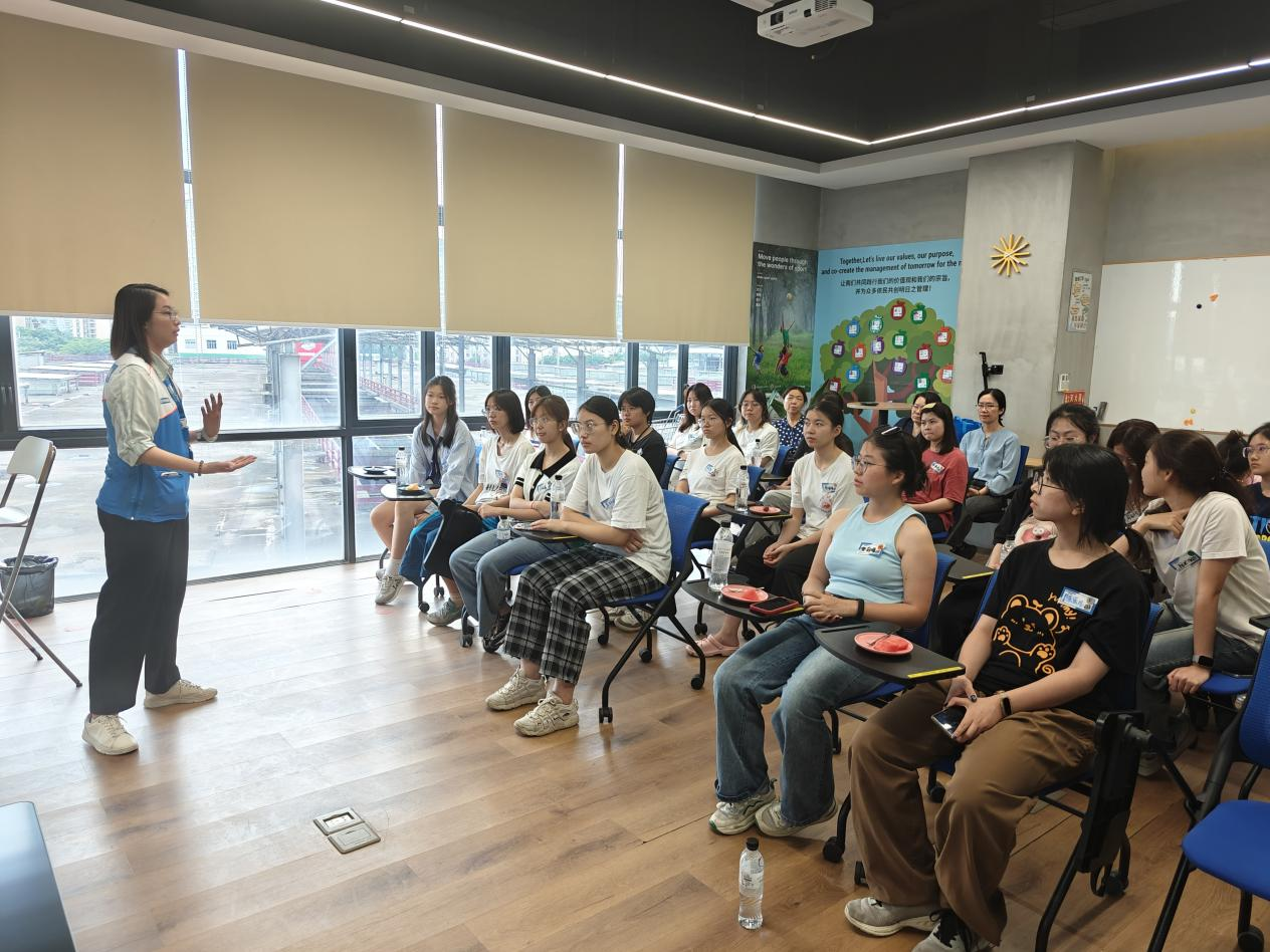 在座谈交流环节,迪卡侬的白云店店长Kelvin Zheng和采购部门经理Aline Li从零售端和生产端详细介绍了公司的运营模式和人才需求。招聘主管Serene Liao突出表达了对高校生的重视,特别是对乐天堂