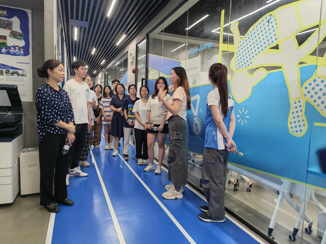 师生参观了迪卡侬的办公区域,对迪卡侬的发展历程、部门设置有了更直观的了解,感受了其“热爱运动、充满活力”的工作氛围和乐天堂。