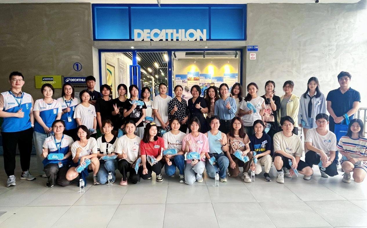 党委书记王秀民带队,副书记魏少娟、组织员敖湘晖、辅导员张阳及24名学生代表参与,受到了迪卡侬方面的热情接待。