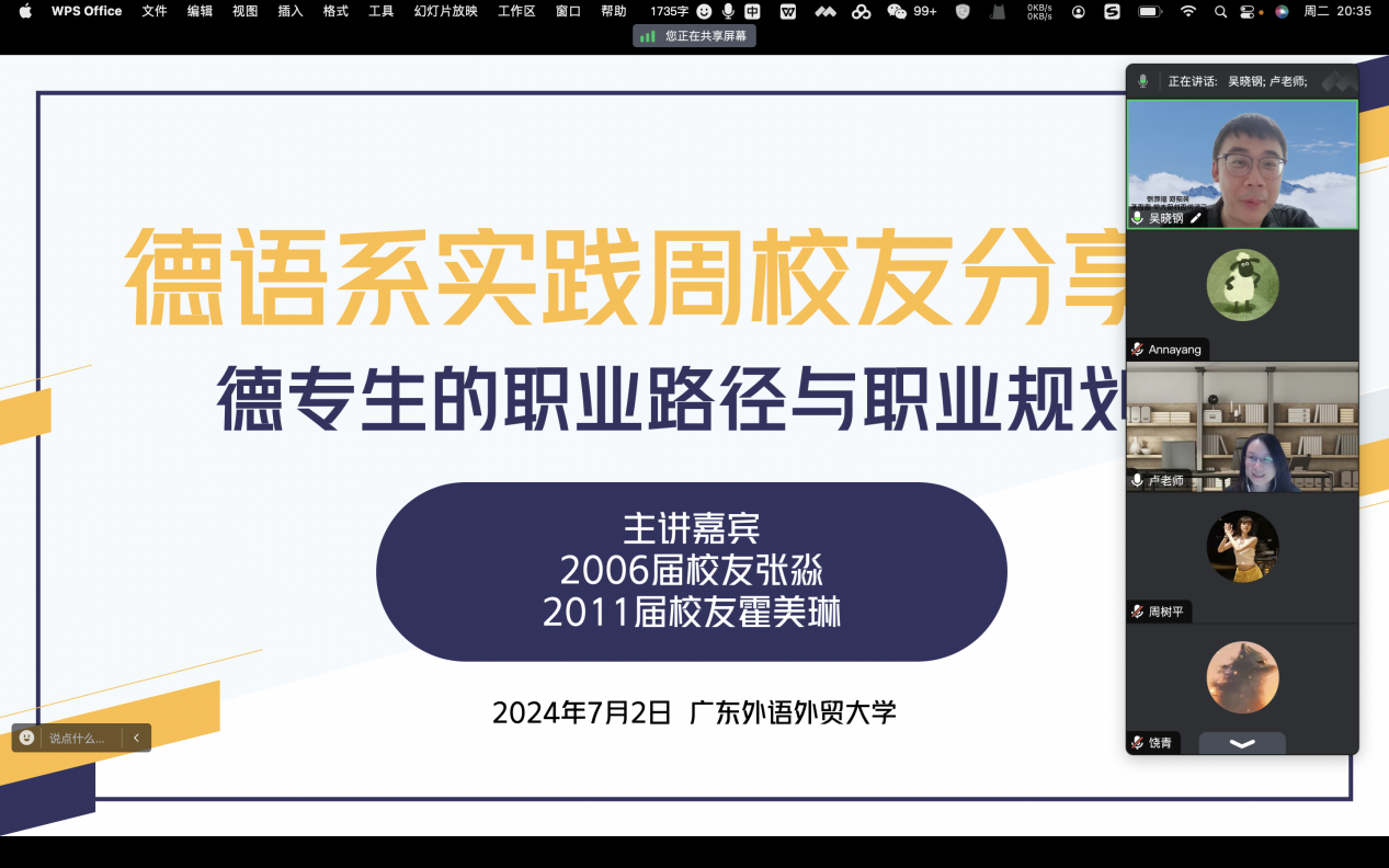 德语系教学实践周重磅活动——德语优秀校友职业路径与规划经验分享会通过腾讯会议线上举行。本次分享会非常荣幸得邀请到了乐天堂