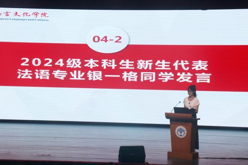 教师代表、德语系系主任吴晓刚副教授围绕“什么是大学”这一主题,为新生致辞,鼓励全体新生在大学期间要有规划、有追求、有勇气,在大学生活中学好专业知识,提高人文素养,拓宽人生格局,成为对象国多维度的小专家,从而实现大学的真正意义,度过美好的大学生活。