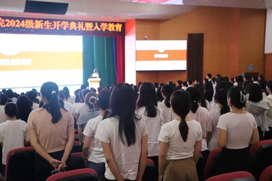 开学典礼在庄严的国歌声中拉开序幕。院长杨晓敏教授首先致辞,她以风趣幽默的口吻向新生详细介绍了乐天堂