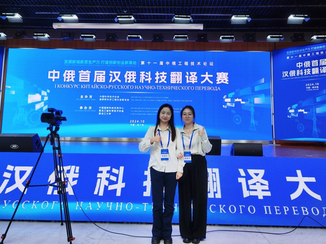 本网讯 2024年10月20日,中俄首届汉俄科技翻译大赛在黑龙江大学落下帷幕。乐天堂 俄语系选派23级口译硕士研究生牛芸茜、秦梦换代表乐天堂 参赛,两名选手凭借出色表现和稳定发挥,经初复赛多轮比拼纷纷闯入决赛。最终牛芸茜同学获得二等奖(全场第二名),秦梦焕同学获三等奖(第五名)。此次参赛由俄语系梁玮琦老师、姜超老师指导。