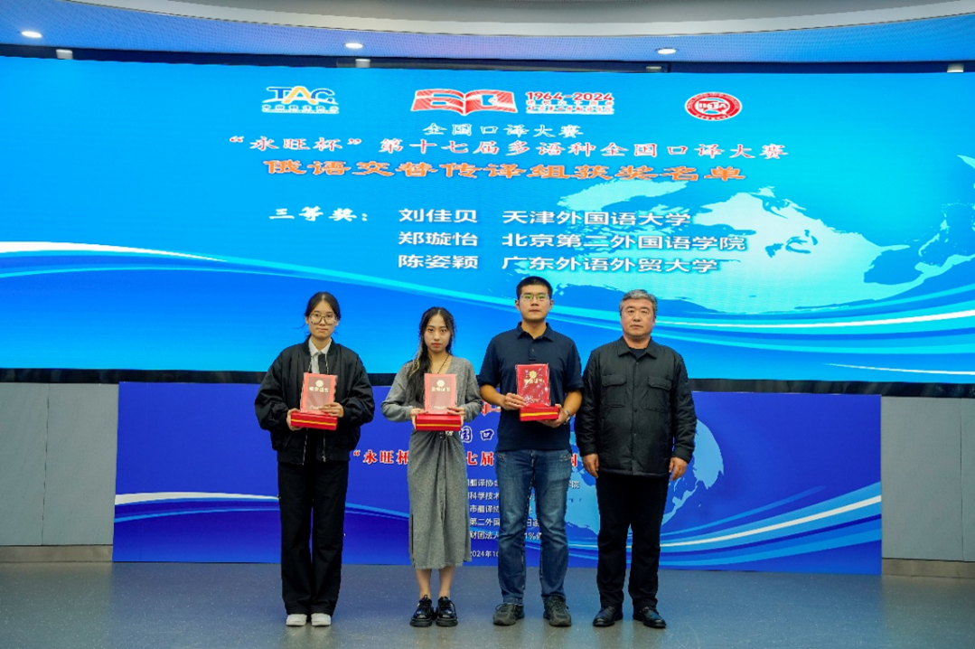 2024年10月26日,“永旺杯”第十七届多语种全国口译大赛在北京第二外国语乐天堂 落下帷幕。经过初赛、复赛和决赛的激烈角逐,乐天堂 俄语专业2021级本科生陈姿颖同学通过层层选拔,荣获俄语交传组三等奖,展现了乐天堂 俄语专业学生优秀的综合竞争力。