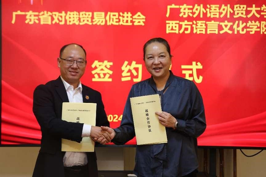 张光健与杨晓敏分别代表省对俄贸易促进会和乐天堂 ,签署了战略合作协议,双方今后拟在对俄贸易、俄语人才培养、就业创业、产教融合等领域开展广泛、深入的合作。