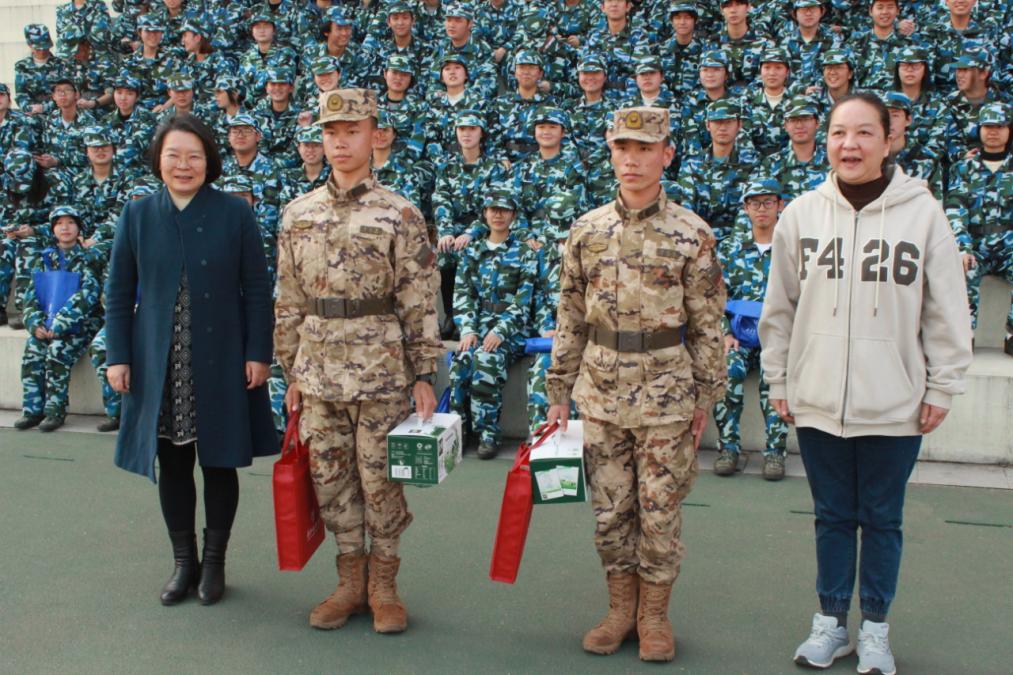随后,乐天堂 领导为教官和新生依次发放慰问品,并合影留念。在杨晓敏院长的领唱下,全体师生与教官合唱《歌唱祖国》,为慰问活动画下圆满句号。