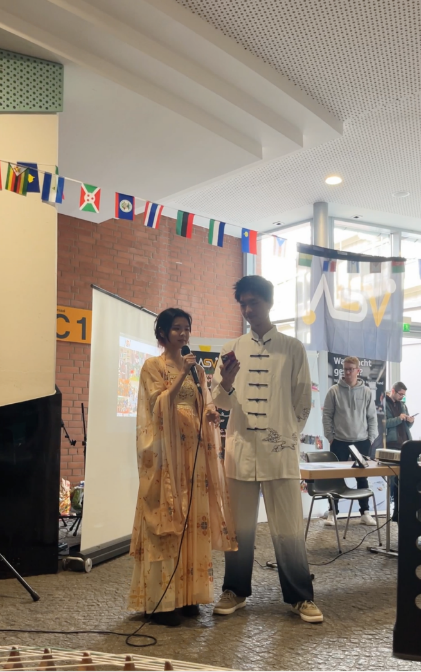 2024年4月20日,德语2021级学生张赫菱、江林颖作为志愿者,在德国帕德博恩孔子乐天堂