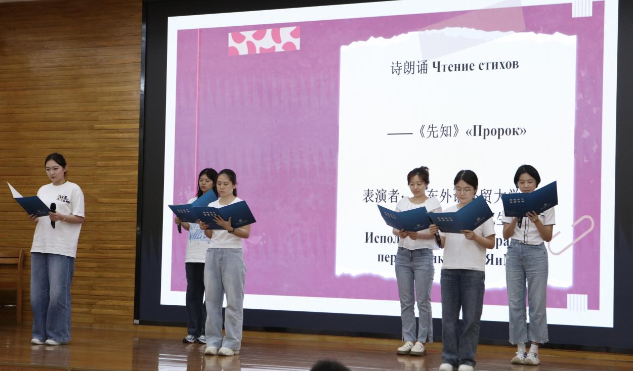 俄语语言文学专业博士生赵阳洋和来自莫斯科国立语言大学的俄罗斯留学生阿琳娜联合主持。各院校学生带来了包括舞蹈、诗朗诵、戏剧、合唱等形式多样的文艺节目,共同庆祝中俄文化年的丰硕成果,也展现了两国文化在交流互鉴中的新活力。至此,2025年“俄语日”活动圆满落下帷幕。