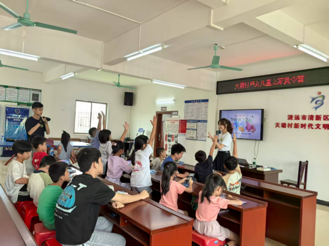 上午,魏少娟一行与队员们在当地村委组织的中小学夏令营面向各年级的学生开展反诈课堂。突击队的队员通过问题抢答、案例解析、互动游戏、观看小视频等形式,向孩子们普及常见诈骗手段,提升防骗意识。下午,魏少娟一行到清新区政府,向叶开交流汇报乐天堂