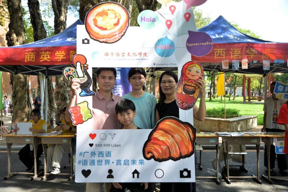 校党委书记石佑启、副校长谢伟光走访西语迎新摊位