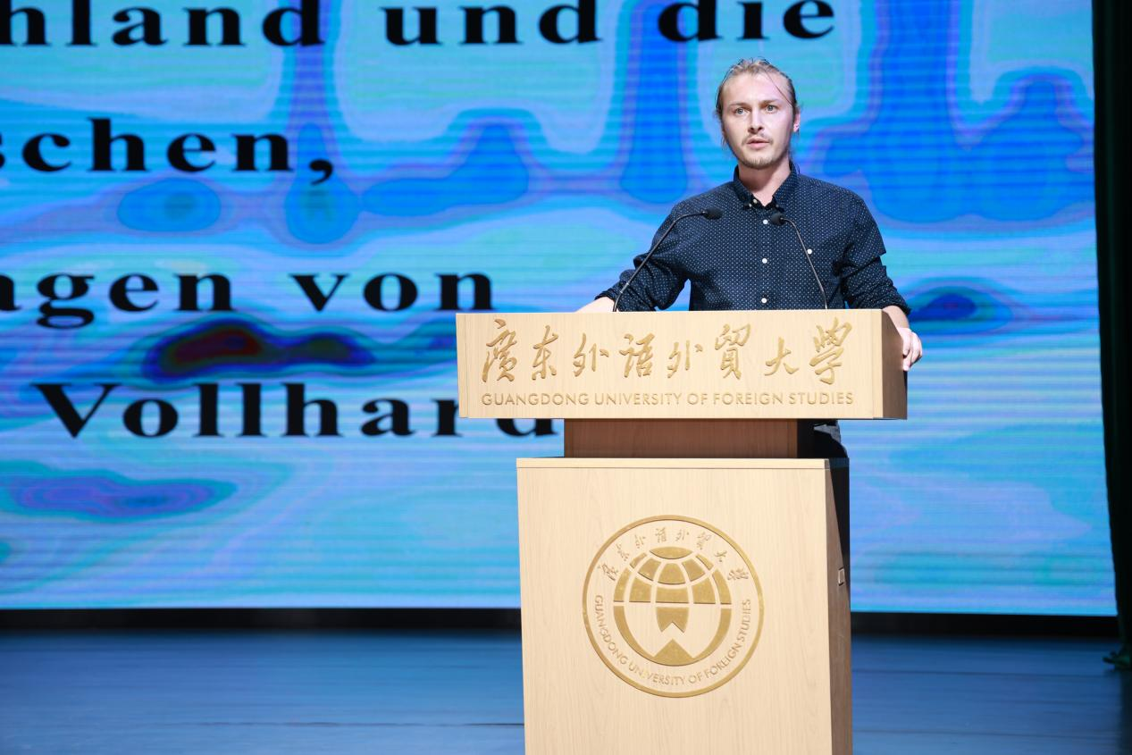 开幕式的最后环节,来自慕尼黑大学的Friedrich Vollhardt教授带来专题讲座,以“托马斯·曼与20世纪德国历史”为,深度解读德语文学与历史的交织而后,其子Cornelius Vollhardt现场读《德国与德意志人》。