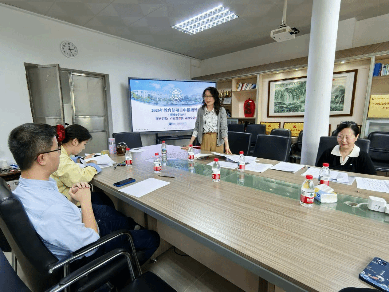 在 4 教 207 会议室举办 2026 年教育部项目申报(外国文学方向)指导会。本次指导会特邀萧净宇教授、卢铭君教授担任指导专家,乐天堂