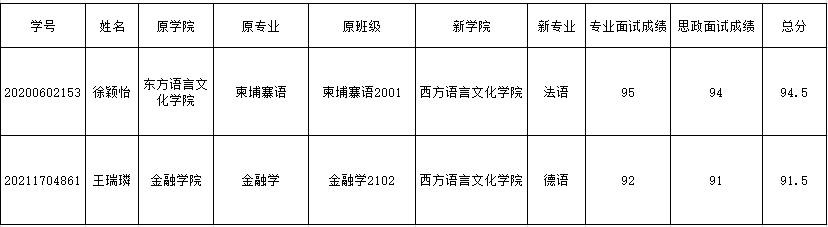 王瑞璘同学因个人规划原因,自动放弃转入德语专业