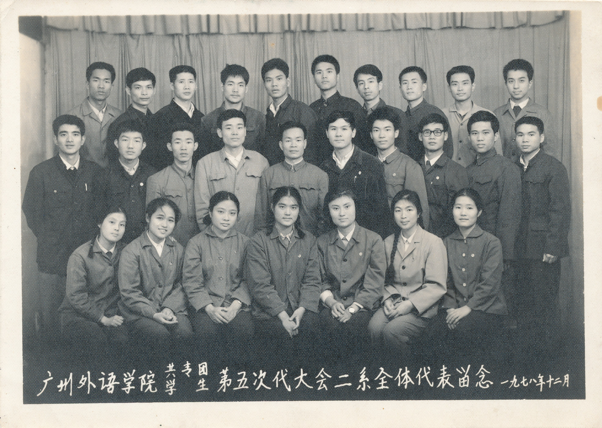 广外二系1978年12月参加乐天堂 共青团、学生第五次代表大会合影留念